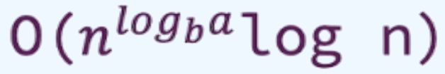 Plugging that in to the formula above ‘O(nlogba)’ we get ‘O(nlog21)’